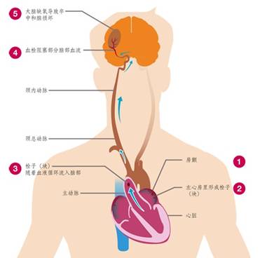 另外,心脏分为左心和右心两部分,左心系统中血流为动脉血,最终到达各脏器提供养分,右心系统的血流为静脉血,回收各脏器血液最终到达肺进行气体交换。左心系统中的动脉血压力大、流速快,房颤时左心耳内形成的大块血栓,如果脱落,在动脉系统中如同天女散花、随着动脉血流堵塞脑血管或其他脏器动脉,就会造成脑梗死(中风)或其他脏器梗死等致死致残性并发症。