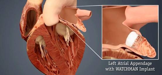 图2. 左心耳封堵预防房颤左心耳来源血栓。