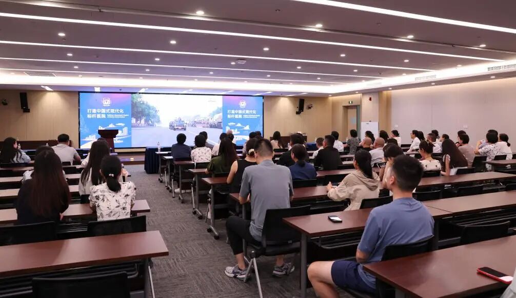 2025年9月3日上午,医院在庆春院区七号楼3楼多功能厅组织观看纪念中国人民抗日战争暨世界反法西斯战争胜利80周年大会暨九三阅兵仪式。医院党委书记徐国斌,党委副书记、纪委书记金敏,副院长黄翯与行政党支部的党员、职工一同观看直播。