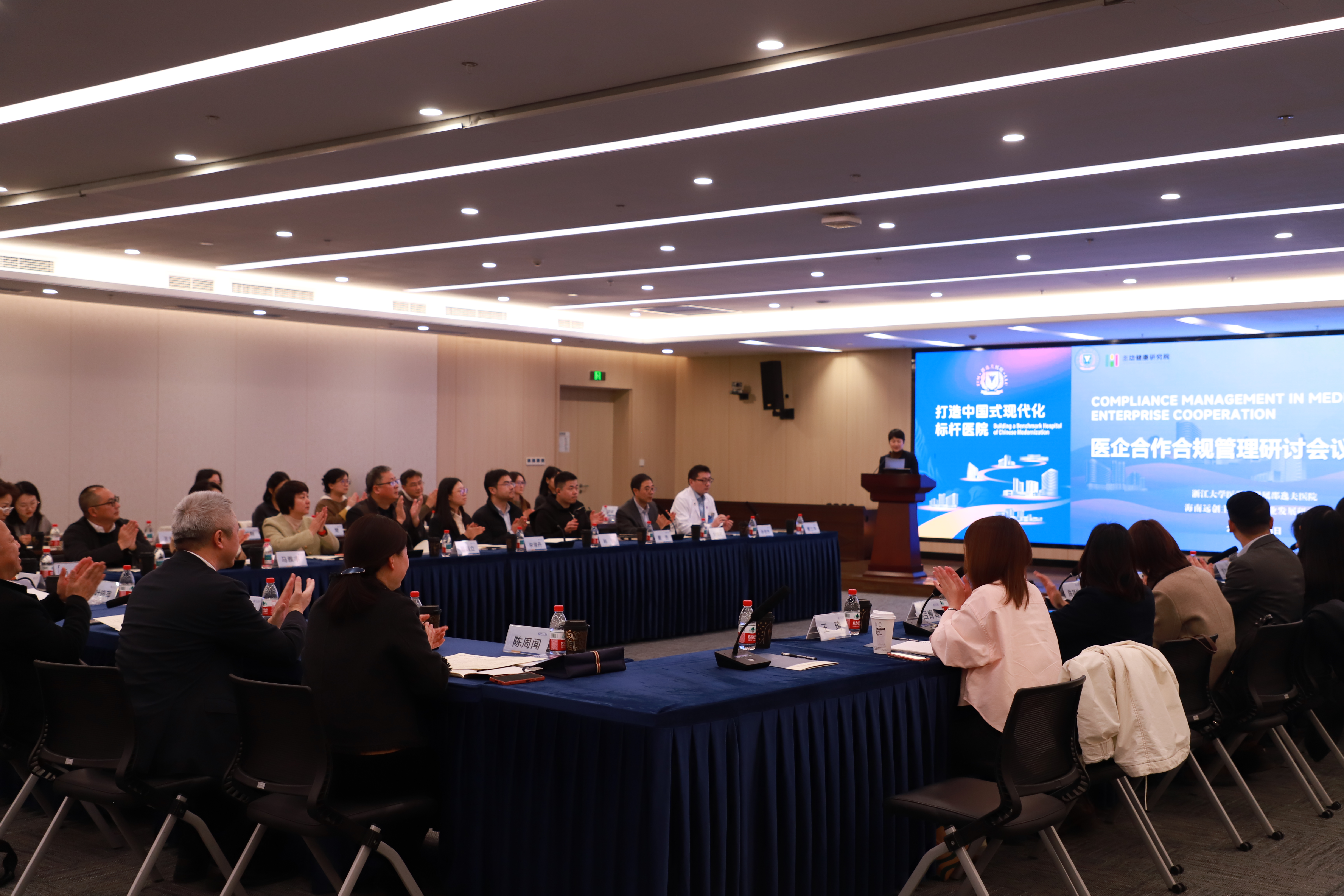 2026年1月14日下午,我院与海南远创主动健康产业发展研究院联合举办的“医企合作合规研讨会”在医院顺利召开。会议汇聚复旦大学、浙江大学等相关专家、多家附属医院纪检监察负责人、本院部分职能部门负责人及医药企业代表共30余人,围绕新形势医企合作中的合规管理开展深度交流研讨。