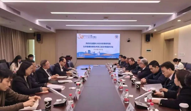 为构建医工多学科协同发展,打造科研机构和医院高质量发展新动能,1月7日下午,由浙江大学医学院附属邵逸夫医院与国科大杭州高等研究院联合举办的生命健康创新技术医工结合专题研讨会在邵逸夫医院庆春院区成功举行。邵逸夫医院院长蔡秀军、副院长宋章法,杭高院院长王建宇、副院长沈伟等领导出席研讨会。